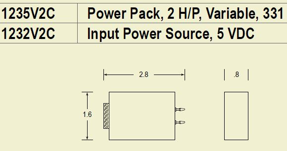 Input power is 5 VDC.