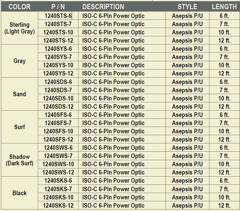 HANDPIECE LIGHT SOURCE TUBING, 6-PIN ISO-C, ASEPSIS POLYURETHANE
