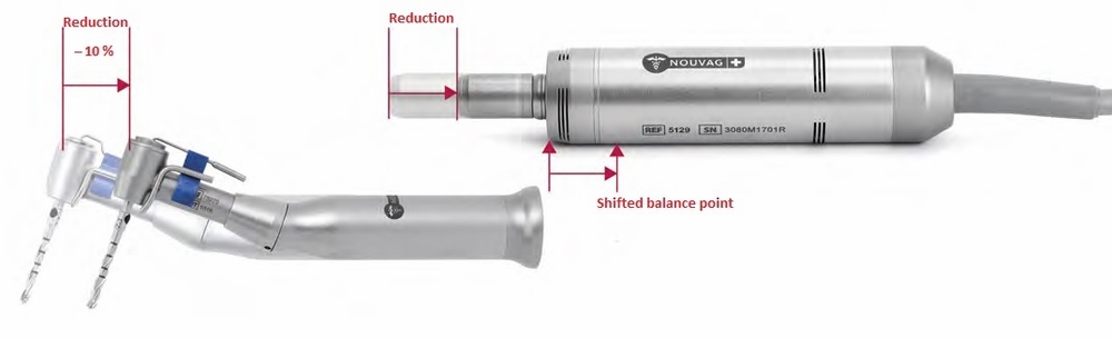 The shorter contra angle together with the adjusted length of the motor result in an advantageous balance of the unit.