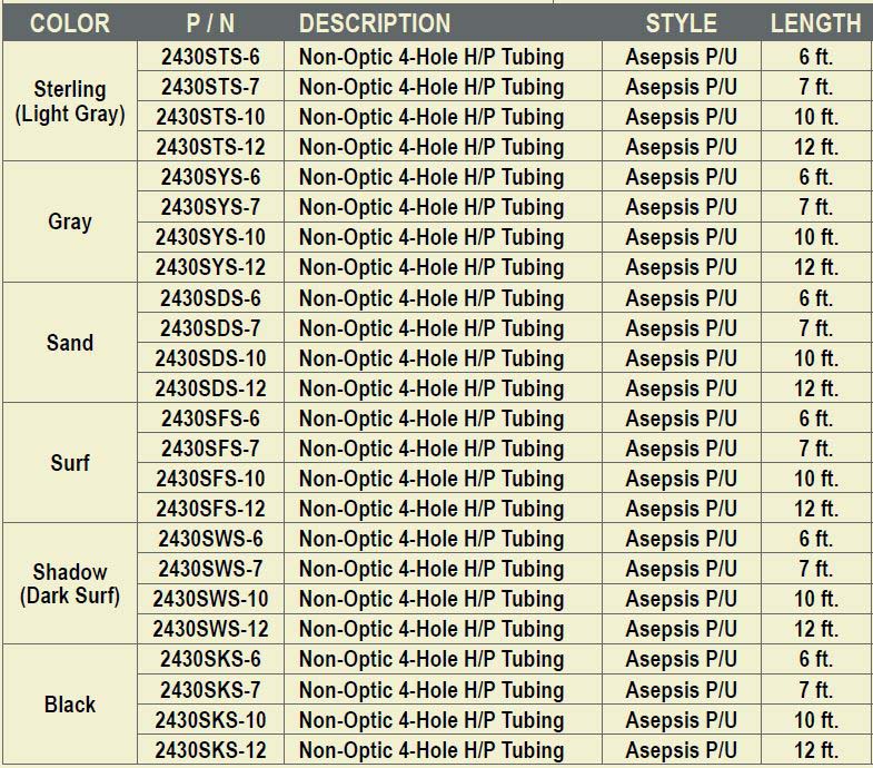 HANDPIECE TUBING, 4 HOLE NON-OPTIC, ASEPSIS POLYURETHANE