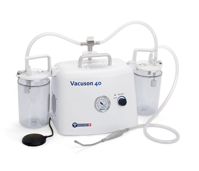 The Nouvag Vacuson Pumps are used for suction of fluids and secretions. The pump power can be regulated continuously monitored by the manometer with a scale in bar and mmHG.
