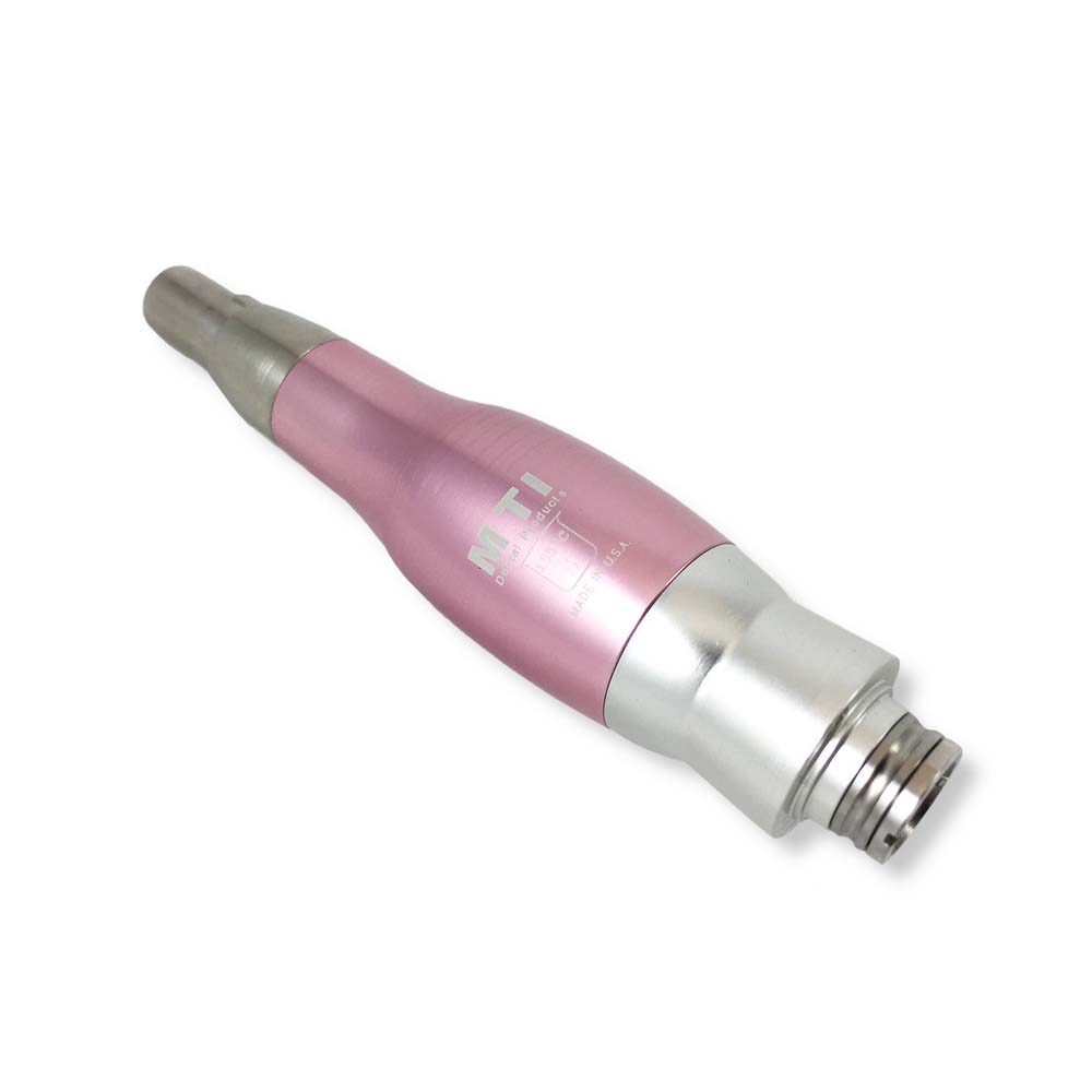 Rated Dental Product Shopper Best Product of 2013, MTI Dental's Master Prophy AirLiteTM features an ergonomic profile and quick-disconnect compatibility. Engineered for performance and durability, the lightweight (2.6 oz) metal handpiece operates at 3,500 rpm for effortless removal of tough stains while limiting gingival abrasion and prophy paste splatter. Its 360° swivel coupler reduces hand fatigue and connects directly to standard4-hole tubing.