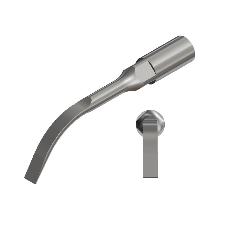 The BE-2 is a flat chisel piezo tip that is best for removing resin-free ortho cements. It may also be used for supragingival calculus removal.