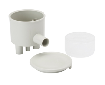Solids collector with removable screenAccepts 2 HVE & 1 SEUses 2-1/8" screen 5817Uses 2-1/8" screen 5889Uses 2-1/8" screen 5887Mounts using four 6-32 screws on bottom surface (included)Includes mounting bracket 58775/8" O.D. Drain