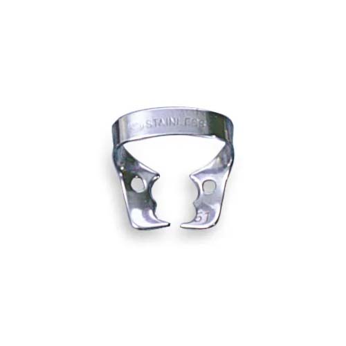 Rubber dam clamp with both sides beaked for use on beaked molars.