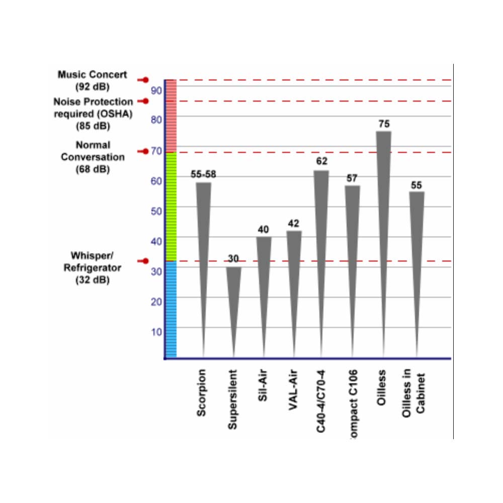Scorpion compressors are extremely quiet sound level barely above a whisper and comes with a regulator/moisture trap and a hose to connect with virtually any airbrush.