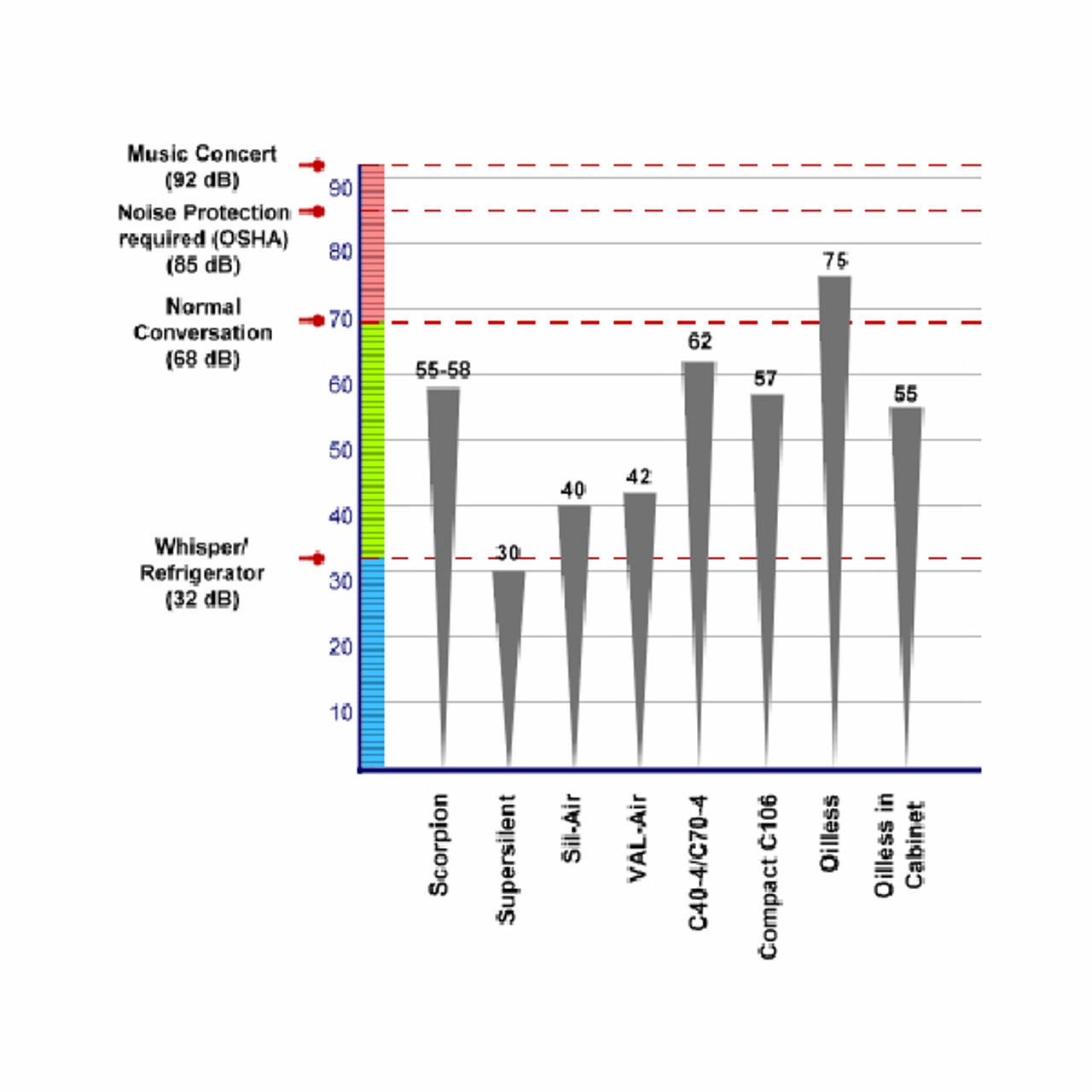 The Super Silent 30-TC compressor is virtually noiseless and is completely automatic. Comes equipped with a tank, pressure regulator with built in moisture trap and line pressure gauge, safety valve, air intake filter and a carrying handle.