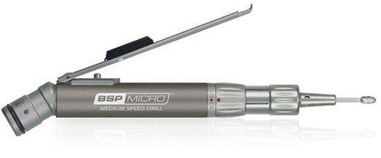 The Brasseler USA PneuMicro Medium Speed Drill isdesigned for small bone cutting, drilling,sculpting and intramedullary canal reaming.