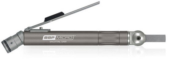 The Sagittal Saw’s light weight and compact designallows excellent visibility to the surgical site.The special blade wrench quickly secures theblade locking screw to load and lock a widevariety of Brasseler USA’s PneuMicro straight, angled and bent saw blades.