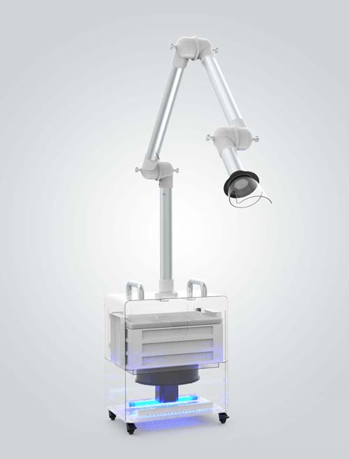 This aerosol control system removes contaminants produced during dental procedures including droplets, aerosols, blood, dust, and virus and uses the most advanced Quattro layer filtration system to kill virus and bacteria absorbed with over 99.9% efficiency. During treatments, a high volume of droplets and aerosols are produced by high-speed handpieces, ultrasonic scalers, and air water syringe that can linger in the air for up to two hours. This places practitioners and office staff health at risk of infections. DuraMax Extraoral Suction System will effectively remove these droplets and aerosols from the immediate treatment site thereby reducing the potential danger from dental aerosols and keep the air in your office safe and clean.
