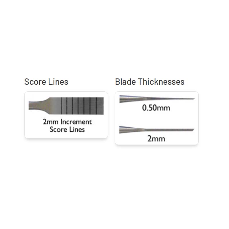 - Precision Score Lines: Each blade is calibrated with 2mm increment score markings for accuracy and depth control.